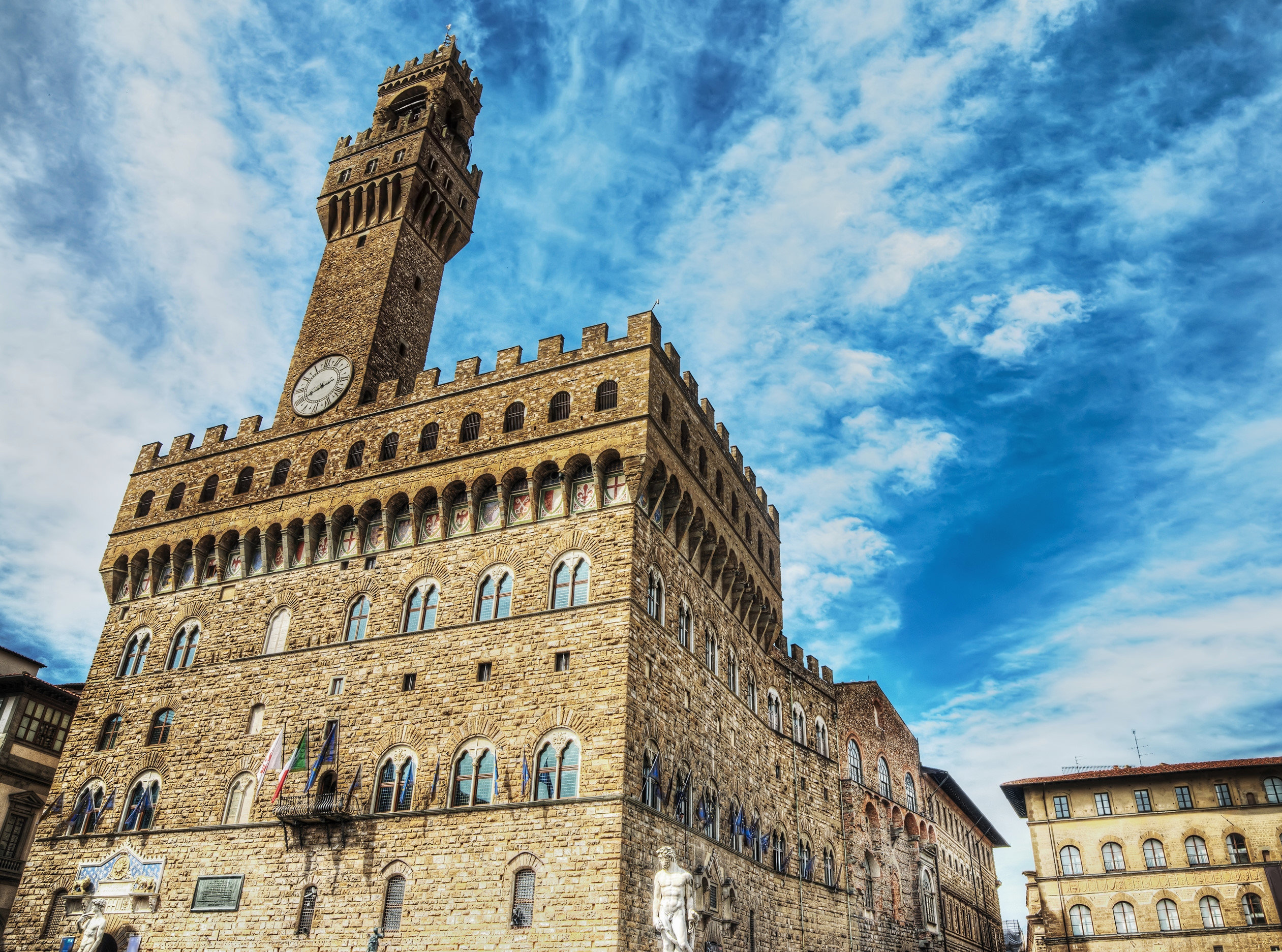 1299 yılında yapımına başlanan ve 14. yüzyılın başlarında tamamlanan Vecchio Sarayı, Floransa’nın sivil yönetim merkezi olarak kullanılmış ve Piazza della Signoria meydanına hakim konumuyla da yüzyıllardır gücün simgesi olmuştur. Orta Çağ Floransa’sının yönetiminde etkili olan Signoria’nın da izlerini taşıyan saray, Michelozzo Avlusu, Eleonora Şapeli, Cinquecento Salonu ve Harita Odası gibi bölümleriyle ziyaretçilere kapsamlı bir tarih yolculuğu sunar.