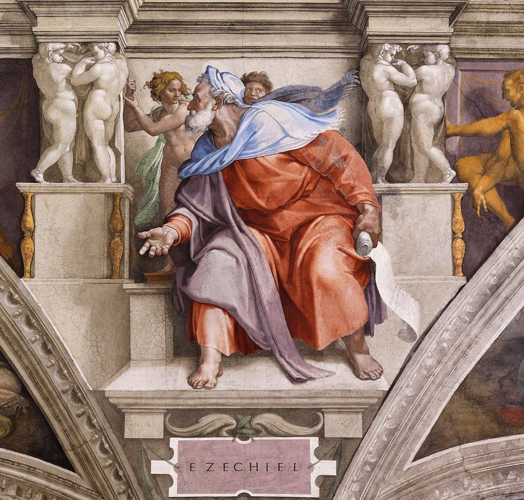 Sistina Şapeli’nde yer verilen peygamberler Yunus, Yeremya, Daniel, Ezekiel, İşaya, Yoel ve Zekeriya peygamberlerdir. 5 kadın kahin ise Libya Kahini, Acem Kahini, Cumae Kahini, Eritre Kahini, Delphoi Kahinidir.