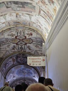 Sistina Şapeli Tabelası – Sistina Şapeli’ne ulaşmak için müzelerin doğrusal hattını takip etmeniz yeterlidir, tabelalar sizi yönlendirmektedir.